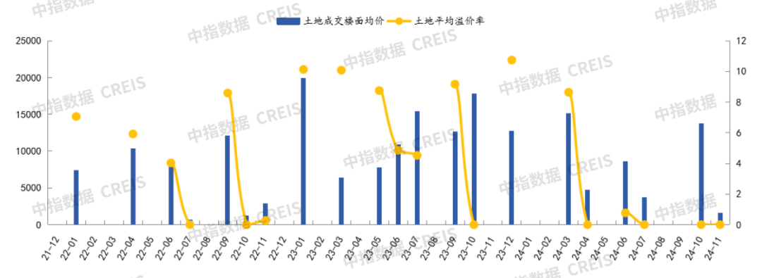 2024年1-11月,宁波成交楼面均价为11360元/ ,同比上涨0.23%;平均溢价率为3.44%,住宅用地出让金达213.99亿元。