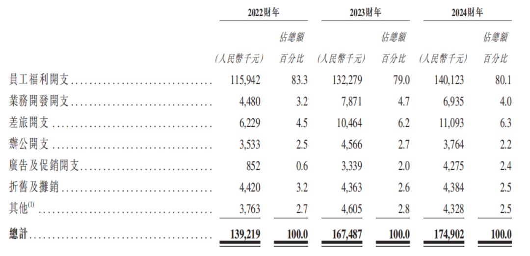 其中,员工福利开支占销售开支的八成,三年共支出3.88亿元。2024年,公司销售、营销及售后服务人员合计914人,占公司总员工数接近70%,庞大的销售人数导致人力资源成本高企。