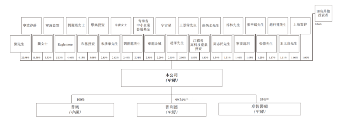 普爱医疗的前身普爱有限成立于2003年4月,注册资本50万元,由刘金虎、龚炯、于灏、刘世龙、朱彦华、燕嫦娥分别拥有50%、10%、10%、10%、10%及10%。