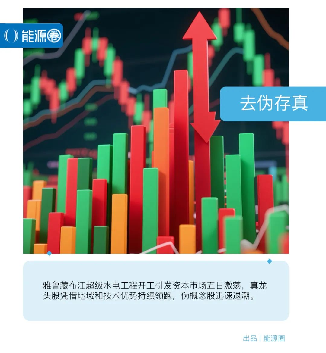 7月21日开盘,雅下水电概念股(以下简称“概念股”)集体暴动,24只个股竞价涨停,板块单日飙升12.52%。然而狂欢并未持久。截至7月25日收盘,板块内部分化已如刀割——真正的核心受益者持续领跑,伪概念股则迅速退潮,一场资本市场的“去伪存真”大戏正在上演。